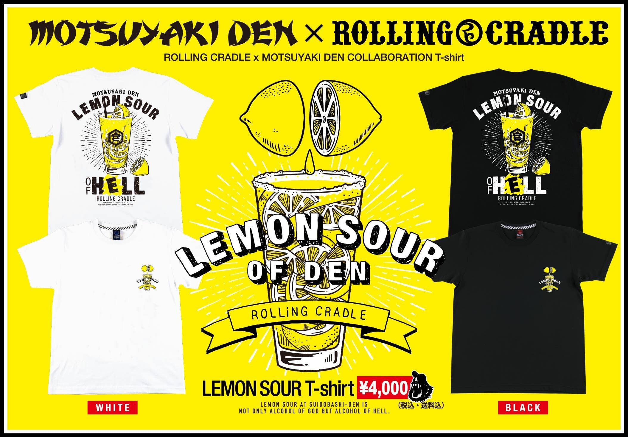 もつ焼でん×ROLLING CRADLEコラボ 『レモンサワーTシャツ』